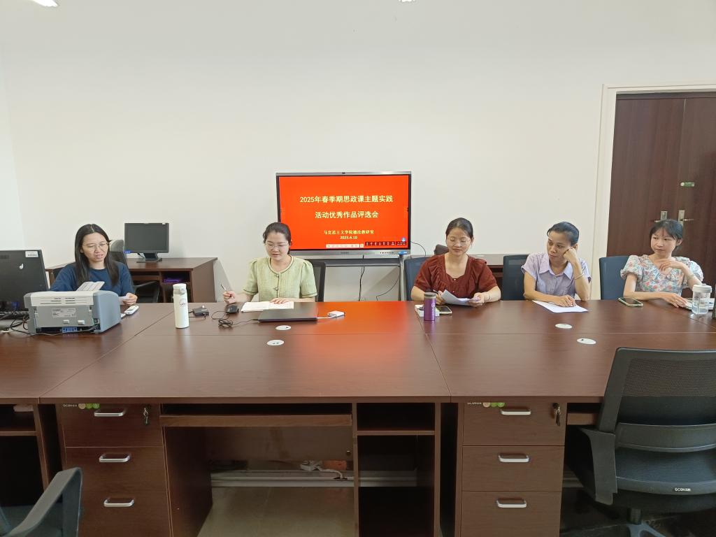 6月10日下午,“思想道德与法治”教研室在清源楼B110召开2025年春季期思政课主题实践活动作品评选会。会议由教研室主任主持,教研室成员参加。