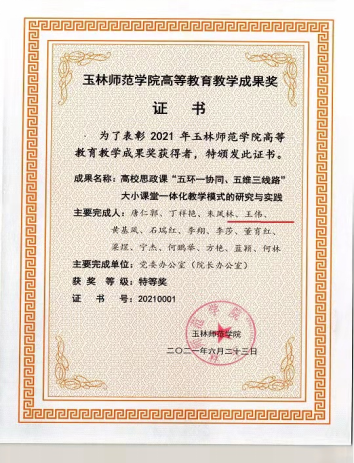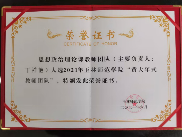 (思政课教师团队获评玉林师范学院“黄大年式教师团队”)