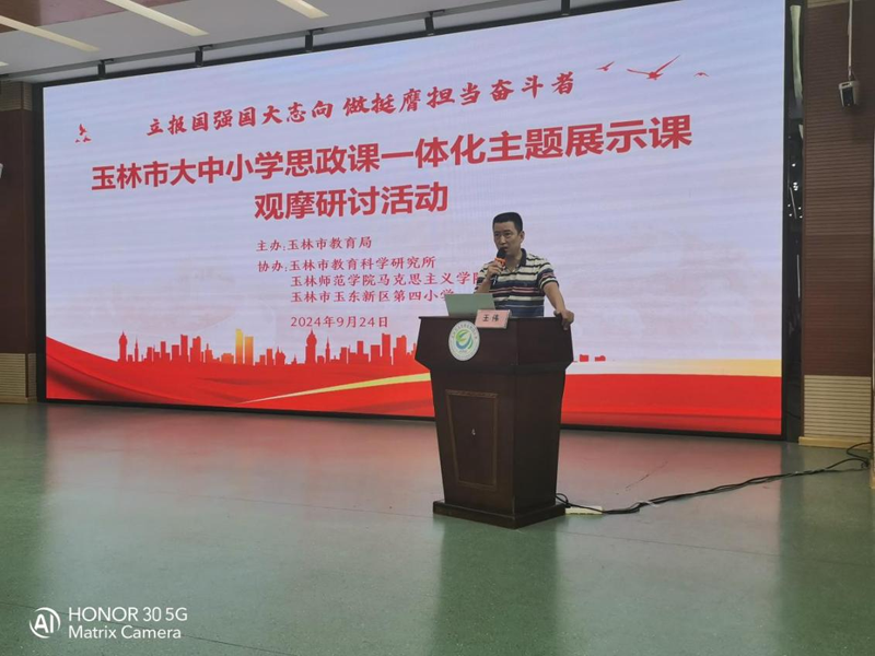 924日,由玉林市教育局举办的玉林市大中小学思政课一体化展示课观摩研讨活动在玉东新区第四小学举行。
