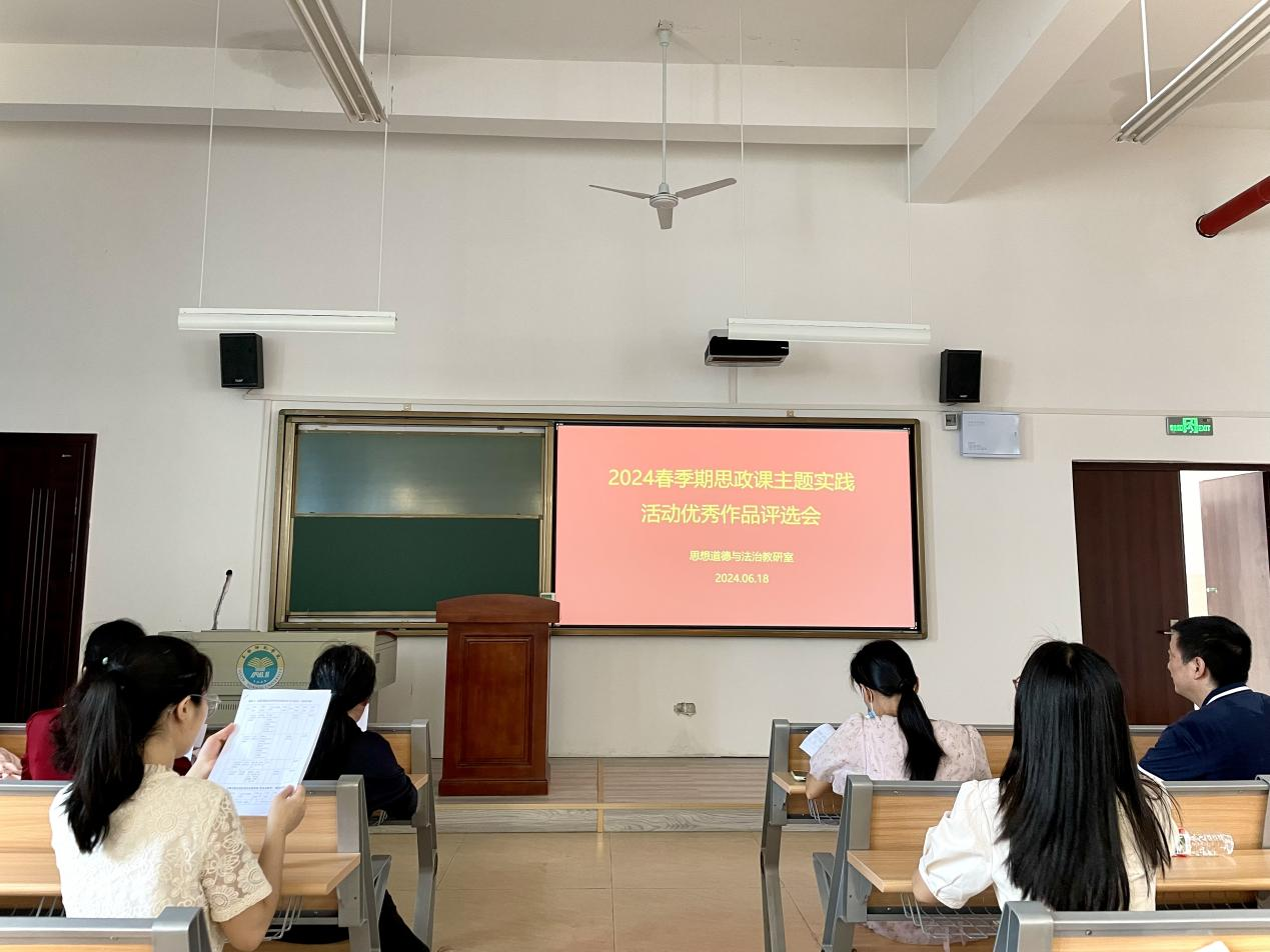 6月18日下午,“思想道德与法治”教研室在清源楼B111教室开展2024年春季期思政课主题实践活动优秀作品评选会,对“思政课研究性学习与实践性教学优秀成果、马克思主义经典作品诵读、大学生讲思政课、我心中的思政课——全校大学生微电影”优秀作品进行了评选。